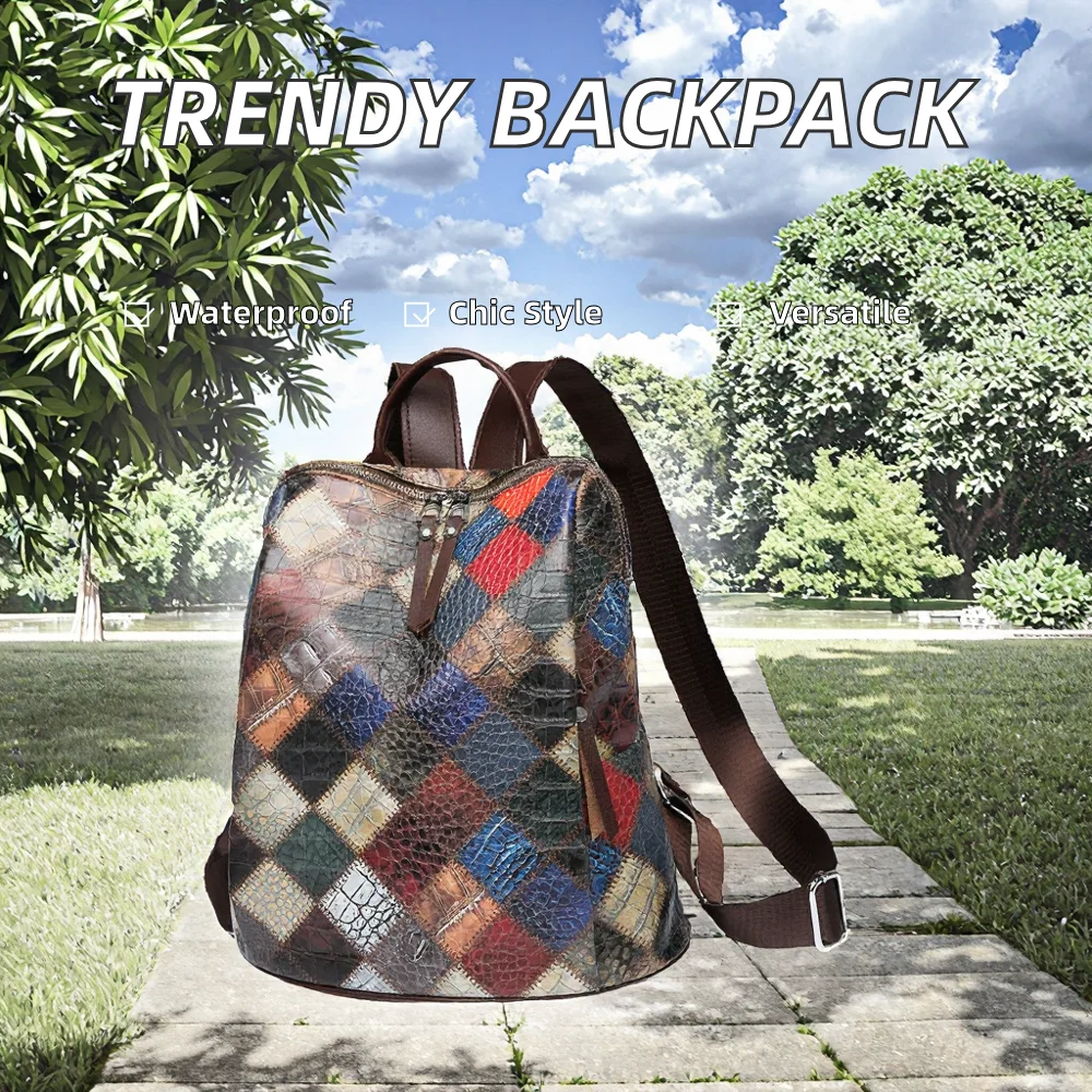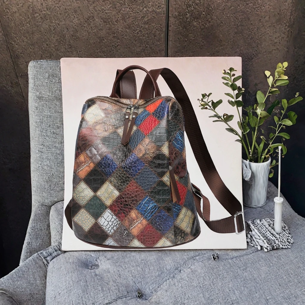 custom logo Vintage Colorful Waterproof Multifunction Patchwork Backpack for Teen Women New Fashion Casual Schoolbag Laptop Travel Zipper